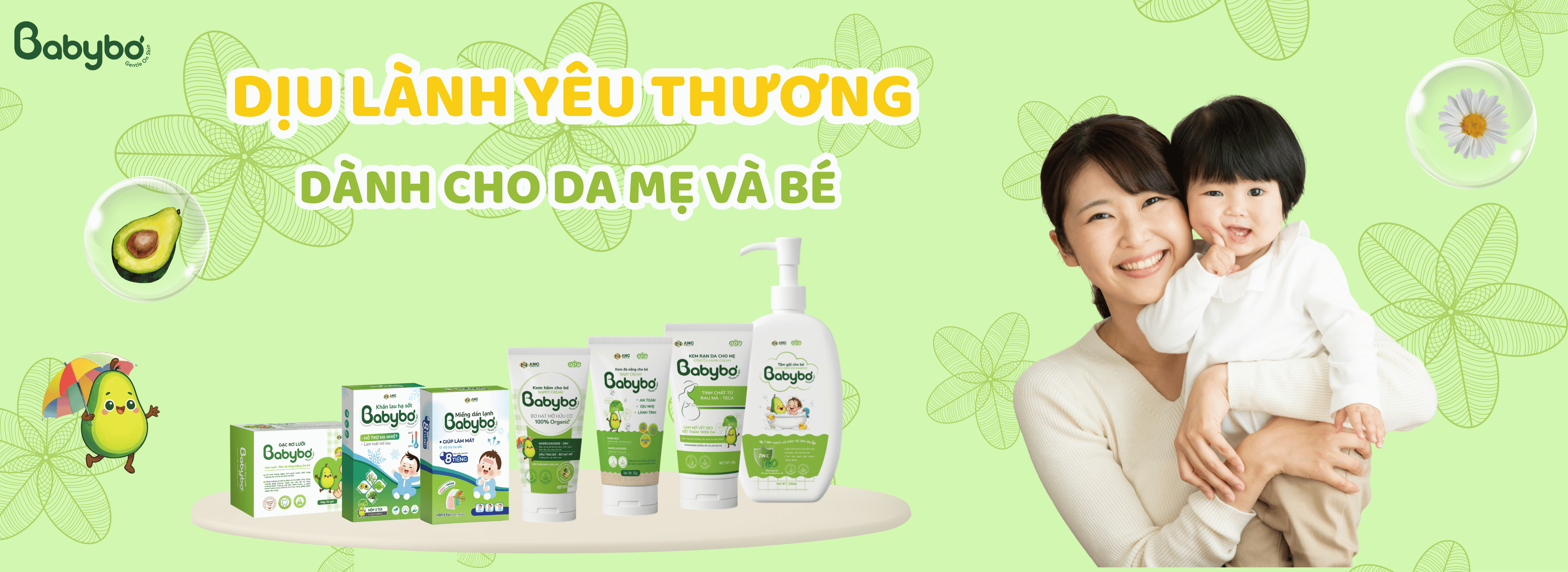 BABYBƠ được sinh ra từ tình yêu dành cho làn da mong manh của những em bé đầu đời. Với nhiều năm kinh nghiệm trong lĩnh vực y tế – mỹ phẩm, chúng tôi dành trọn tâm huyết để nghiên cứu và tạo nên những công thức thật sự an toàn, dịu lành.