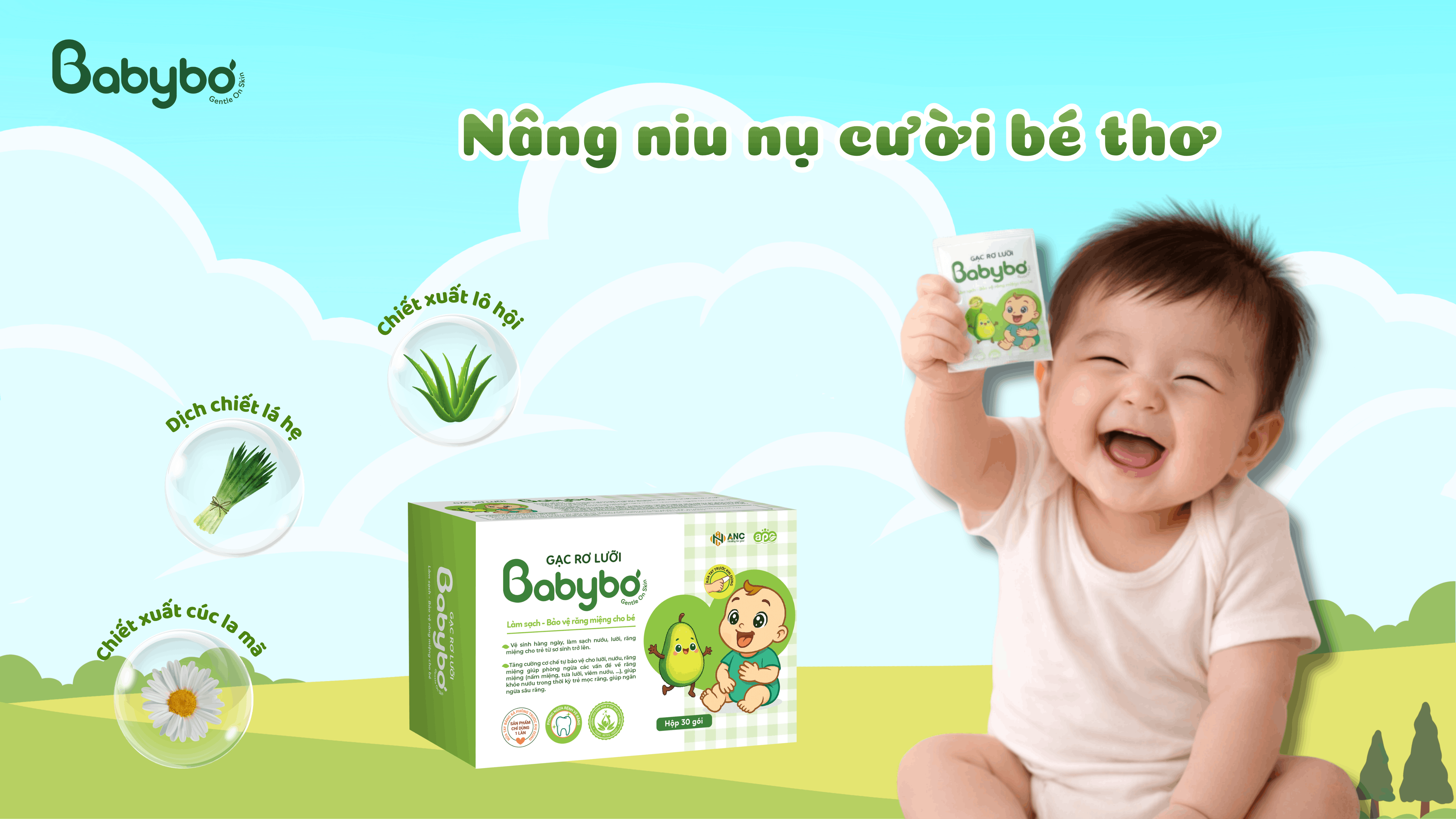 BABYBƠ ra đời với mong muốn đồng hành cùng gia đình trong hành trình nuôi dưỡng những mầm non nhỏ, mang đến sự an tâm bằng những sản phẩm dịu lành, an toàn và minh bạch cho làn da nhạy cảm của con.
